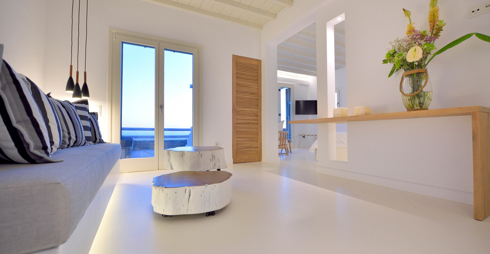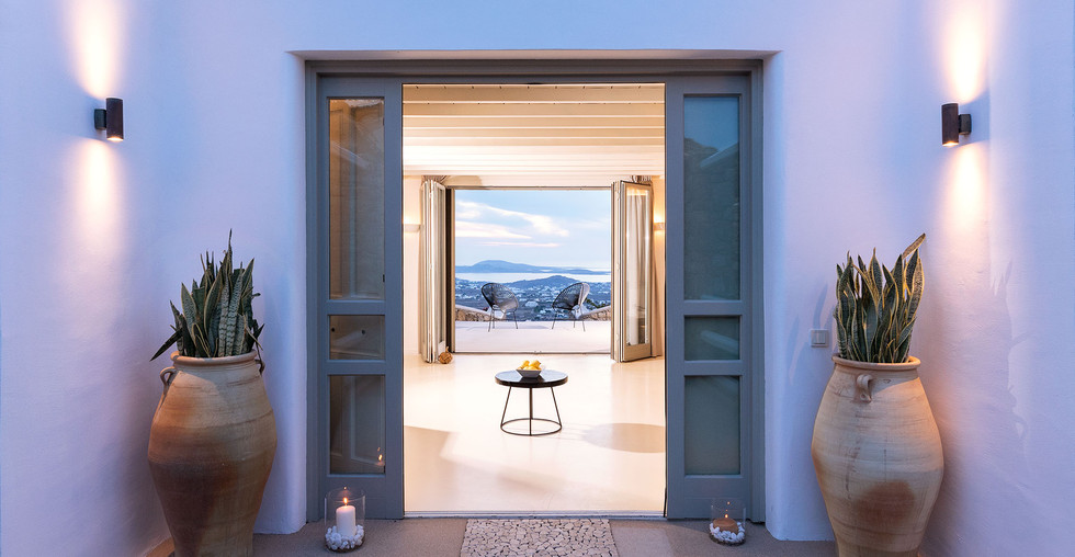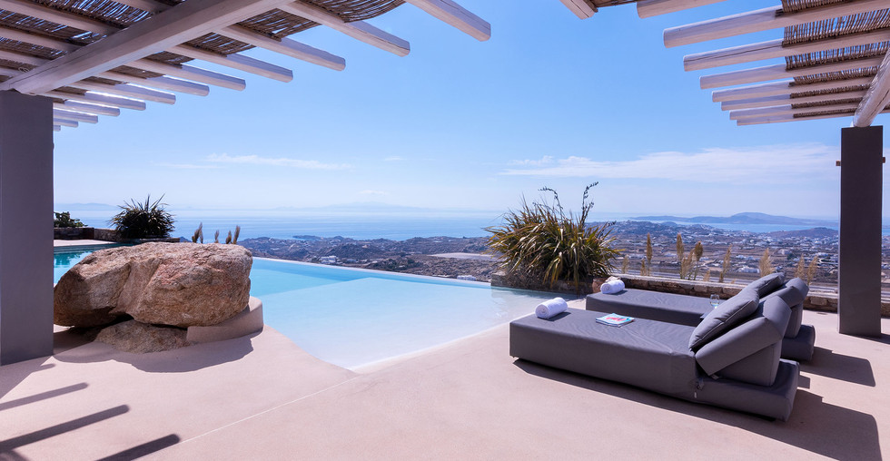 Perched atop a commanding hill, Villa Lunar reigns over Mykonos with breathtaking sea views of the Cycladic islands. This 240sqm ground-level sanctuary welcomes up to 6 guests in three bedrooms, including two master suites with en-suite bathrooms and a separate bedroom. The modern living space features a fully equipped kitchen, fireplace, WC, and indoor Jacuzzi. Designed for year-round indulgence, Villa Lunar boasts underfloor heating and a private infinity pool with mesmerizing fiber optics. Immerse yourself in the epitome of refined luxury, where each dawn bathes the terrace in flame-orange hues, inviting you to bask in the splendor of this architectural triumph.
